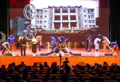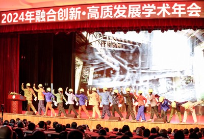2024年12月6日,四川省广安华蓥市的学生在教育学术年会上,表演具有地方特色的情景剧《激情燃烧的岁月——三线建设》。