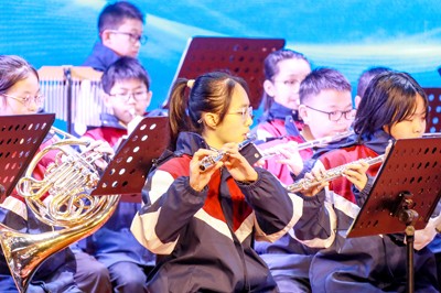 2024年12月6日,四川省广安华蓥市的学生在教育学术年会上演奏管弦乐曲《水牛儿》、《野马》。