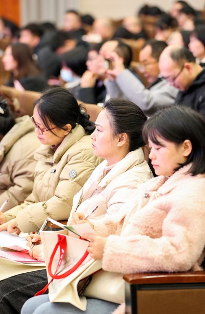 2024年12月6日,在四川省广安华蓥市召开的教育学术年会上,参加会议的老师在认真听讲和作笔记。(邱海鹰 刘南贤/文图)