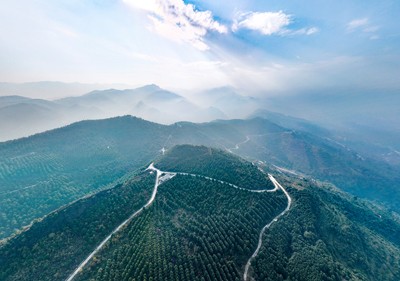2024年12月18日,四川省华蓥市在退矿复垦地和荒山荒坡发展起来的华龙街道柏木山油樟产业园,蜿蜒的产业公路显得格外耀眼。(邱海鹰)