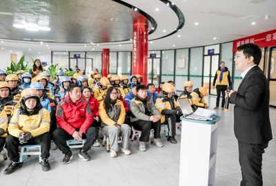 2024年12月20日,四川省广安市美团、饿了么、京东等新业态从业人员,在听取该市社保规划师宣讲社保政策、从业安全和工伤预防等知识。