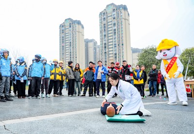 2024年12月20日,在四川省广安市社会保险局开展的“社保规划师新春走基层”系列主题活动中,医疗志愿者在给美团、饿了么、京东等新业态从业人员,演示心肺复苏等知识。