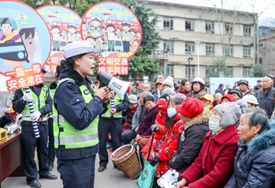 四川省华蓥市公安局交通警察大队针对年关来临、返乡务工人员增多和车辆增多及交通安全风险隐患增多等情况,进一步深化交警“美丽乡村行”巡回宣讲活动,采取分片、定人、定责的方式,走乡镇、进社区、入村组,及时开展“护航乡亲平安出行”活动。