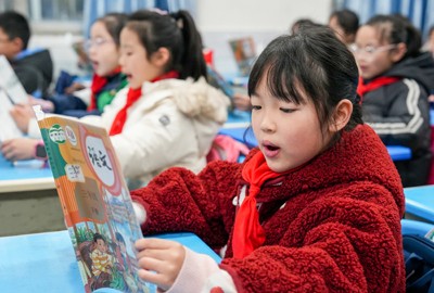 2025年2月17日,四川省华蓥市双河小学的学生在课堂上朗读课文。
