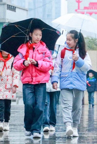 2025年2月17日,四川省华蓥市77所中小学校及幼儿园的4.3万多名学生,在春雨滋润中如数正式开学行课。