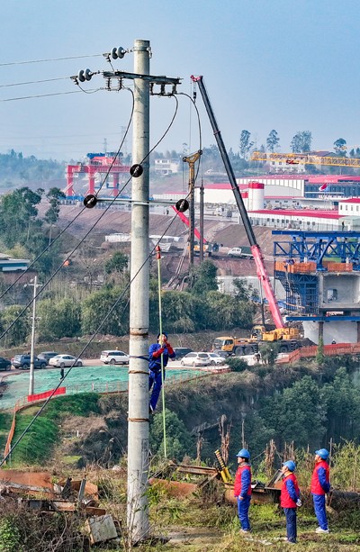 春节之后,国家电网四川省广安华蓥市供电公司红岩供电所组织专门的电力志愿服务队,奔忙在国家重点工程西渝高铁广安东站制梁场施工现场,架设、安装电缆电线,巡检供电设施设备,为制梁场提供电力保障。
