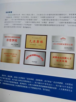 该校占地面积200、91亩,总建筑面积8、1万平方米;总投资近3亿元,教学设备总值达6635.25万元;有功能齐全的实训室76个,智慧教室17间,网络多媒体教室75间。现有教职员工355人,专任教师216人,研究生学历28人,本科学历188人,高级教师73人,双师型教师136人,省特级教师1人,市特级教师1人,市学科带头人1人,市教坛新秀3人,双流工匠5人,区(县)级学科带头人29人,成都市技能大师工作室1个,市级名师工作室1个,区级名师工作室2个,现有在籍学生3150余人,班级78个。