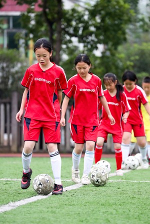 近年来,四川省华蓥市狠抓校园足球发展,相继在全市11所城区和23所乡镇中小学校建起了环境较好的足球场,引导学生在绿茵场上开展趣味多彩的足球活动,培养学生的阳光心态和优良体质、团队意识、挑战精神, 为圆山里娃的“足球梦”创造了良好条件。目前,该市共有52支校园足球队,队员达1000余名。
