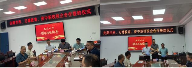 2023年7月27日,资中县职业技术学校、完美世界教育科技(北京)有限公司和四川万博智汇云教育科技有限公司进行了校企合作三方签约仪式。资中县教育研究室刘华主任、职教中心邓辉主任,学校校长邓盛斌,完美世界教育副总裁杨凯、区域经理孙家龙,四川万博教育软件股份有限公司总经理万福等校企领导出席了签约仪式,仪式由资中县职业技术学校实训处主任罗显金主持。