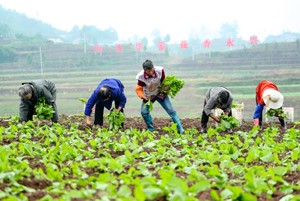 2022年10月26日,四川省华蓥市永兴镇大佛山村的村民,利用阴雨天气在粮经复合种植基地栽种“订单”销给重庆涪陵榨菜、双福蔬菜市场的榨菜。
