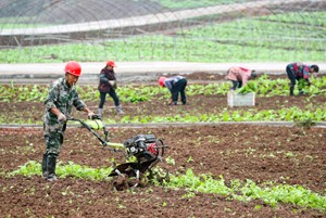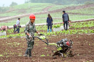 2022年10月26日, 四川省华蓥市永兴镇大佛山村的村民,在粮经复合种植基地利用微耕机翻耕农田,用于栽种“订单”销给重庆涪陵榨菜、双福蔬菜市场的榨菜。(邱海鹰 刘 鹏 摄影报道)