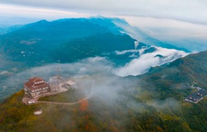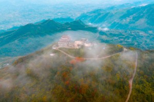 2022年10月28日,雨后放晴的四川省广安市华蓥山高登古刹, 被飘渺的云雾缭绕,宛如仙山琼阁。