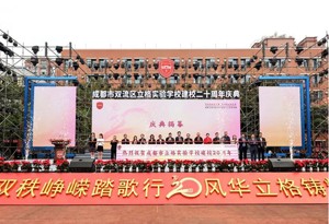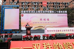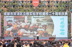 上午9:40,成都立格实验学校建校20周年庆典在学校运动场举行。