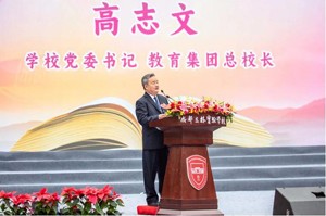 立格实验教育集团总校长高志文在典礼上讲话。作为立格实验的创始人和首任领航人,高志文校长陪伴和见证学校从无到有、从优到强,经历筹建奠基落成、建校初期发展、特色优质发展、集团转型发展的辉煌历程。
