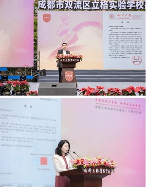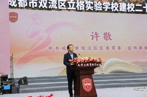 中共成都市双流区区委常委、宣传部部长许敬在典礼上讲话。他在讲话中说:立格实验校为老百姓提供了多元教育选择,是天府大地上一颗璀璨的教育新星。