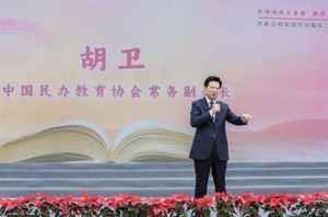 中国民办教育协会常务副会长胡卫先生在典礼上讲话。他在讲话中说:立格实验学校通过课程改革来推动素质教育的落地生根,使学校办学取得了成功,是中国民办教育的一个奇迹。