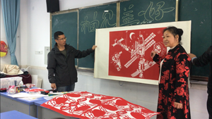 活动伊始,王老师先上了一堂剪纸课,从剪纸的概念、特点、剪纸工具的使用、剪纸的基本方法和步骤,以及剪纸作品设计进行了讲解,由易到难、由简到繁,听课老师以及学生们快速掌握了剪纸的基本技能和方法。