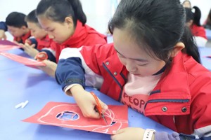 瞧,孩子们个个神情专注,宛如一个个小小剪纸艺术家。