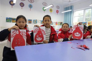 孩子们说:“这是我第一次剪纸,能在剪纸艺人的帮助下剪出柚子作品,觉得很有成就感......”。