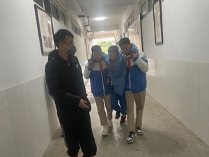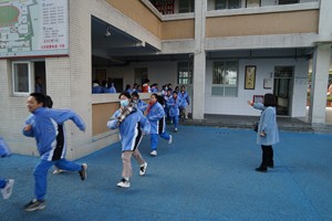上午9点30分,广播响起警报声,听到紧急疏散信号后,班主任引导学生紧急避险,确定周围情况安全之后,迅速打开教室门,引导学生有序离开教室,避免造成拥挤,同时各楼层负责人到达各自指定的地点有序指引各班迅速撤离。