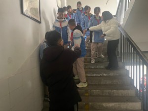 在引导疏散人员带领下,按照既定路线有秩序的撤离到安全地带。同时,引导教师大声提醒学生“注意秩序,避免拥挤,防止跌倒”。