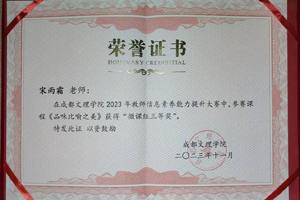 作为写作教师,宋老师坚持“尊重生命、发现生活、持续生长”的教学观念,鼓励学生读写结合,从校园写作逐步迈向广阔的文学天地。秉持以身作则的理念,她也坚持把写作教学、科研与写作实践结合起来,近年来发表了相关的论文及文学作品,在《华西都市报》《德阳日报》《龙门阵》《中学生百科》等平台发表各类作品400余篇,散文集《生命的芭茅花》获第四届四川散文奖,并加入四川省作家协会、四川省写作学会等专业团体。(子月)
