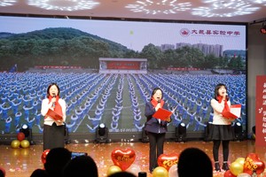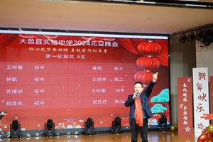 闻歌起舞辞旧岁,欢声笑语迎新年。在2024年元旦来临之际,为践行大邑教育高质量发展三年行动计划,丰富校园文化艺术生活,激发同学们对美好未来的憧憬,努力营造文明高雅、奋发向上的校园文化氛围。2023年12月28晚,大邑县实验中学在学术厅举行了2024年“同心筑梦新征程,勇毅前行向未来”庆元旦晚会。晚会以主会场与线上直播方式开展。学校全体师生以及家长代表参与和观看了本次联欢会。