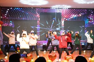 整个晚会节目,流行与古典兼收,温情与火热并举,表演形式多样,师生同乐,精彩纷呈,歌曲演唱《当》、《千里之外》、《海阔天空》等节目,既悦耳动听,已激情飞扬。乐器弹奏《一路向北》、《光年之外》技法娴熟,天籁之音,令人陶醉。更有《福来到》、《梦回江陵》、《妈妈和女儿》、《青花瓷》等各类风格舞蹈轮番上场,或活泼动感,或浪漫温馨,或轻快悠扬,或婀娜多姿,或古风雅韵……全体观众沉沁其中,回味无穷。而诗歌朗诵《龙年元旦实中师想》、《我爱上班》则展示教师的无私奉献,献身党的教育事业的决心、信心。幽默风趣的相声《对春联》,让同学们领略到传统戏曲的无穷魅力,阵阵欢快的笑声响彻校园。晚会在抽奖环节中达到高潮,随着学校领导倒数声中,一个个师生的名字在屏幕上跳动和锁定,无论幸运花落谁家,一阵阵欢呼、一声声祝福、一句句鼓励都注入大家的心田,融入到实中大家庭里。