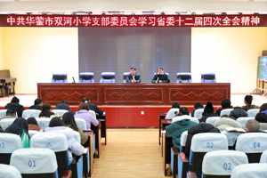 1月23日,华蓥市双河小学党支部书记李福林在学校师训中心宣讲了省委十二届四次全会精神,学校全体党员参加了本次宣讲会。