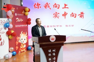 学校校长张家智做《你我向上,实中向前》的主题报告。他指出:2023年守正创新,全体教职工精诚团结,斗志昂扬,学校高质量发展;立德树人的教育理念已在广大教师心中形成。五育融合,进一步促进了学生全面发展,健康成长。2024年继往开来,学校积极争创省二级示范校、特色学校。他要求:全体教师同心协力,聚焦高质量,谋求新发展。