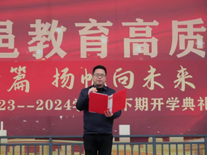 分管德育副校长倪亚波、分管安全副校长杨虎分别针对德育、安全两个方面进行了讲话。最后,学校党支部书记、校长刘进军向全体师生致以诚挚的新年问候,并鼓励全体师生在充满希望的时节,播下美好的种子,辛勤地管理,用心地呵护,最终收获成功的喜悦。