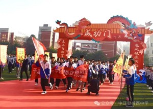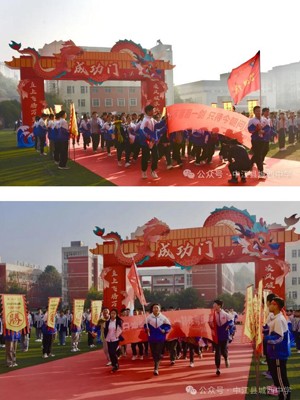 三年寒窗磨利剑,只待六月试锋芒。迎着三月的风,踏着明媚的光,羊崎书记手举战旗带领校长团率先通过成功门,各班级组成的战旗方阵紧随其后。