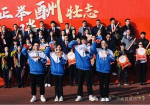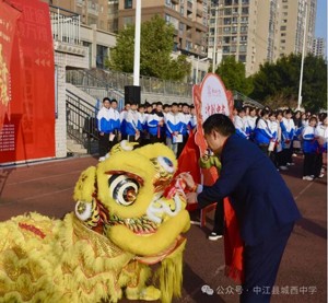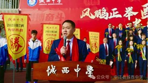 旌旗扬,号令催,百日炼真钢。战旗是前进的风向标,今天,羊崎书记将这点燃斗志的火种交与何志生主席。何主席接下战旗,挥舞战旗,立下目标。在此刻,这战旗代表的是城西中学全体师生的奋斗、责任与梦想!