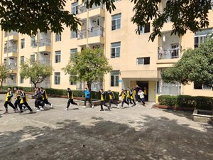 春和景明,生机盎然,伴随着一声响亮的“哔——”的口哨声,文昌中学全体住校生井然有序地抱着头从宿舍大楼迅速撤出,到达操场指定地点,集合并整队……这正是文昌中学于2024年3月14日举行的住校生应急疏散演练的场景。