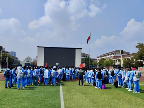 下午13点,校园运动场上洋溢着青春的气息,初一、初二年级的师生秩序井然,蓄势待发。
