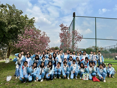 在赏景之余,同学们也不忘做文明使者,捡拾沿途垃圾,展现高尚品德与创文风采。