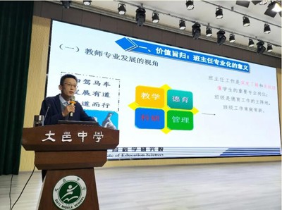 四川省教育科学研究院中小学班主任工作教研员、浙江大学博士马云飞老师做了题为《指向班主任专业化的卓越班级建设:基本特质与实现路径》的专题讲座。他从班主任专业化的意义以及现实困境两方面出发,通过真实案例讲述班主任专业素养提升的重要性,并分享了卓越班级的九大特质和六大维度的实现路径,为班主任的专业发展指明了方向。