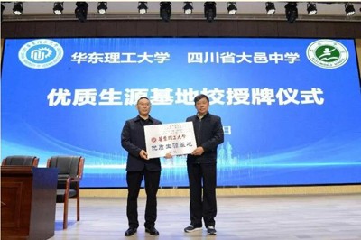 同时,华东理工大学王远明教授为我校学生作主题为《材料科技发展与人类文明进展》的讲座,他通过对人类历史发展过程中使用工具的展示,向学生们介绍了材料的重要性:材料是社会发展的基石和支柱;新材料是科技发展的先导;材料研发和应用能力体现了国家的竞争力。他鼓励学生在科学技术飞速发展的时代背景下,练就扎实的内功,不断提升专业综合能力,为未来发展打下坚实基础;随后进行了“优质生源基地”授牌仪式。