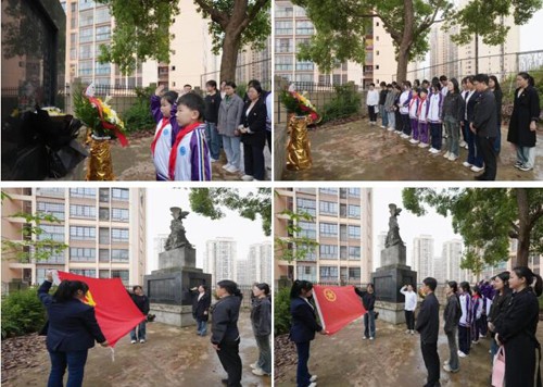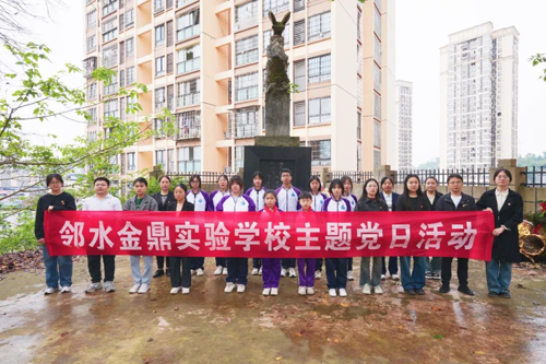 2024年4月25日上午,邻水金鼎实验学校党支部组织学校党员教师、入党积极分子、部分优秀团员、少先队学生一行26人,到邻水县党性教育现场教学点“邻山公园烈士墓”开展“追寻先烈足迹,致敬飞播英雄”活动。
