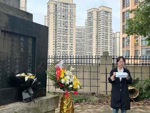 学校党支部书记余紫馨主持这次祭扫活动。首先,她为大家介绍了桑克喜、赵兴华两位飞行员烈士的基本情况,讲解了他们在邻水县执行飞播造林任务的英雄事迹。