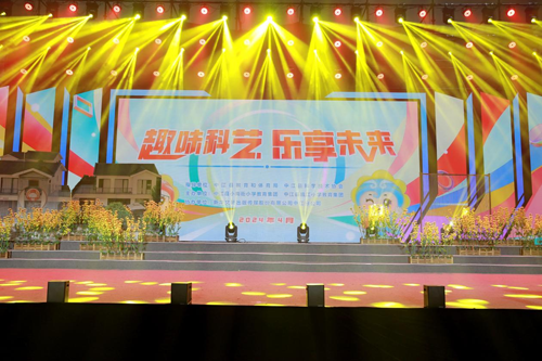 科技启智,艺术润心。4月23日下午,中江县小南街小学教育集团、中江县凯江小学教育集团联合举办的2024年“趣味科艺 乐享未来”科技艺术嘉年华活动在中江县体育馆盛大开幕。本次活动由中江县教育和体育局、中江县科学技术协会指导,新华文轩出版传媒股份有限公司中江分公司协办,得到了中江老庙黄金、德阳市隆台建筑工程有限公司的大力支持,通过四川电视台进行网络直播,展示了两集团各校育人成果,推广各校文化育人办学理念,借助家校社之合力,推动教育集团优质均衡发展。