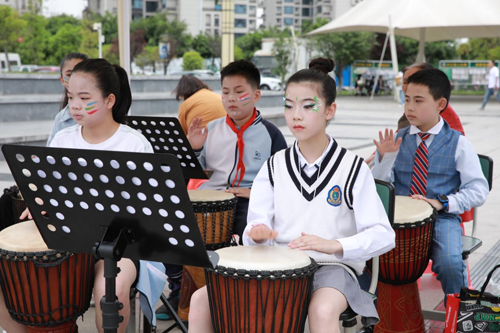 近年来,小南街小学一直坚持“五育”并举,全面发展素质教育,助推学生核心素养形成。室外展览区,不仅有孩子们的书法、美术、科技小制作、手抄报等静态作品,还有孩子们现场表演的钢琴、非洲鼓、萨克斯、扎染制作等。穿梭其间,欣赏着一幅幅或稚嫩、或灵动、或创意十足的作品,聆听着一曲曲动人的乐曲,看到了一张张自信而阳光的笑脸,与会人员频频点头称赞。德阳市科协的科技大篷车也来到现场,一个个有趣的科技探索项目,吸引着孩子们的目光,激发着他们探索的欲望。