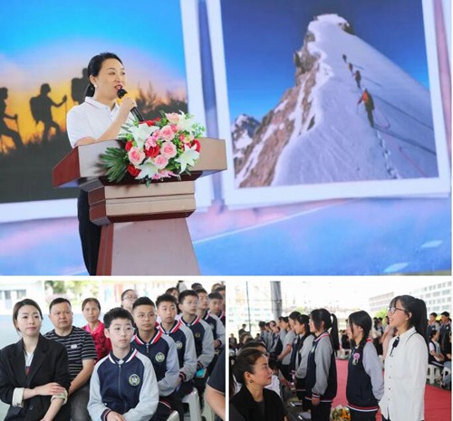 安州东辰学校初中部王鑫校长上台送上了祝福,并对孩子们提出了14岁的期望和要求,希望他们能够励志担当,勇攀高峰,成为真正的拥有情商、智商、逆商、志商、德商、财商的东辰“六商”学子。