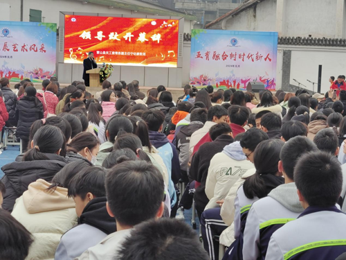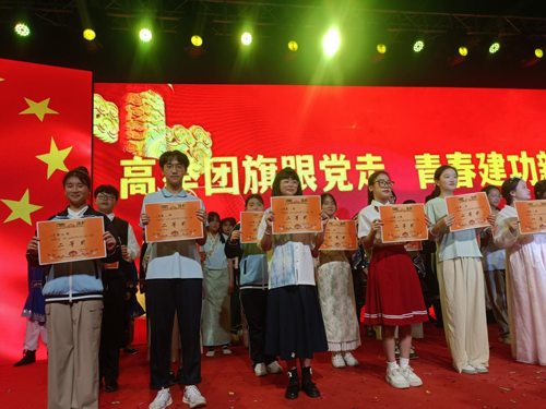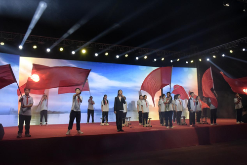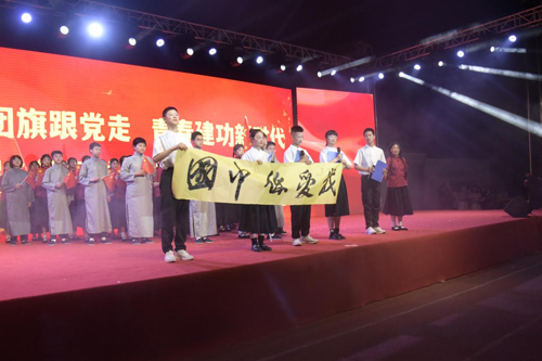 在文艺节目展演前,学校表扬了9个团支部、13名优秀团员和3名团干部。100名学生加入了共青团,新团员代表熊丽鲜发了言。全校师生、学生家长代表共4000余人参加文艺庆典。