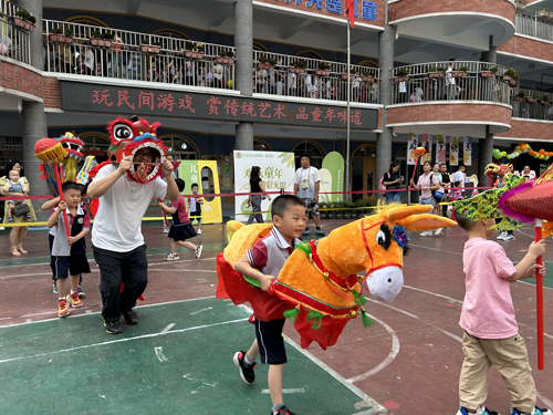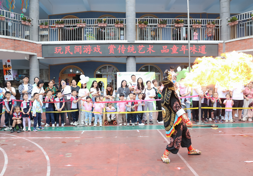 本次游戏节,幼儿园大环境和各游戏区域布置均以民间文化为主题,与六一庆祝活动相结合,体现了特色和欢乐氛围。活动分为民俗体验、观赏民间艺术表演、亲子民间游戏、品尝民间特色美食四大类。精选特色小吃手撕海螺卷、醪糟汤圆、杨枝甘露、棉花糖等8种,民俗体验活动舞龙舞狮、猜灯谜、做香包、跳竹竿等4种,民间游戏揪尾巴、投壶、猪八戒背媳妇、盲人敲鼓等8种,共分为18个公共活动区域向家长和幼儿开放,还特意邀请了三位民间艺人来园为孩子带来了木偶剧“小红帽”、杂耍“快乐小厨师”、杂技“美猴王”、川剧变脸表演,为孩子们带来一次有中国味儿的艺术体验。游戏活动中,孩子们与爸爸妈妈共同参与,相互配合,处处洋溢着欢乐、祥和、温馨的气氛。