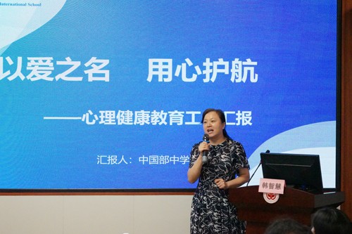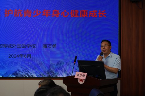 初中分会场,成都市石室锦城外国语学校潘万勇老师分享了“多元整合资源,护航青少年身心健康成长”,成都树德实验中学(西区)蒲坚老师分享了“培养孩子志趣,为人生发展奠基”,西南财经大学附属中学邹小晔老师分享了“加减乘除绘心路,全员育人筑未来”,成都市棕北中学悦湖学校邹杨庆老师分享了“军体固本,立德励能——学校军体特色的生态型构建”,大邑县晋原初级中学黄小燕老师分享了“劳动引领创新,擦亮育人底色——中药材种植课程的实践探索”,成都美视学校中国部老师韩智慧分享了“以爱之名,用心护航”。