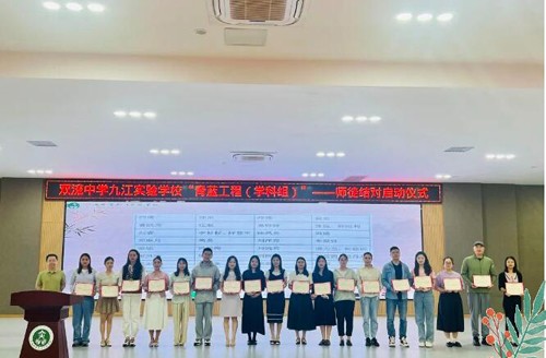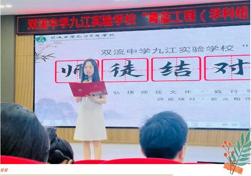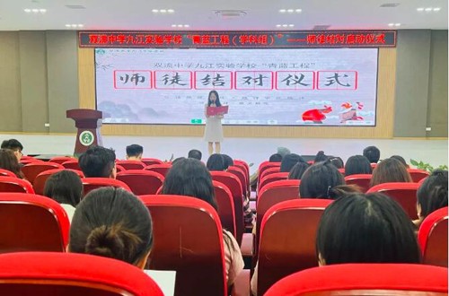 三人行,必有我师焉,遂择其善者而从之。为进一步加强我校师资队伍建设,充分发挥老教师的传、帮、带作用,促进青年教师的专业成长,帮助青年教师不断提高教育、教学水平,2024年5月11日,双流中学九江实验学校隆重举行了“青蓝工程(学科组)”启动仪式,开启一场师徒结缘的奇妙旅程。