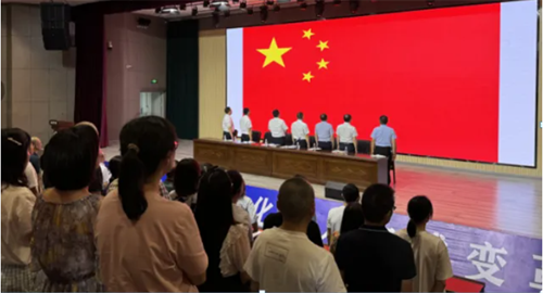 大会伊始,全体起立,面向党旗,齐唱国歌。激昂的旋律在会场中奏响,党员们的神情庄严肃穆,心中激荡着为党和国家教育事业不懈奋斗的决心。