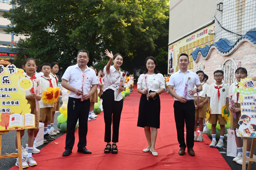 清晨,学校领导班子在校门口齐聚一堂,迎接老师们,亲手送上节日的祝福,为老师们的新学期启能赋航。