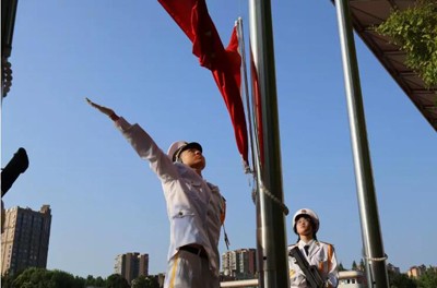 国歌奏响,国旗飘扬,开学典礼在雄壮的国歌声正式拉开帷幕。国旗在国歌声中冉冉升起,少年在碧空中望向五星,校园明净云皎洁,学子向阳心有火,新的学期,新的起点,大中学子定将肩负青春之责任逐梦前行。